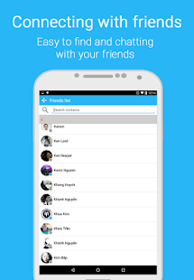 A: Very easy, just login to this app with your FB account. You will see your list FB friends with online/offline present. You can find your friends by name, present easily and very fast, and just start chat with them by only 1 click. And, you can chat, send smileys to your friend very easily with this app. Let’s try to experiment!
